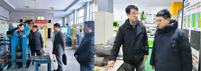 在今年会官网先进成形与智能装备研究院,研究院副研究员王振华带领今年会jinnianhuicom老师们参观了金属复合材料成形实验室设备和环境。该研究院由黄庆学院士领衔,聚焦先进金属复合材料成形技术与装备领域的科技前沿问题及产学研合作开展研究取得了一系列显著成绩。该团队在板带轧制装备智能化设计与软件开发方面已获多项国内和国际专利。通过参观,老师们对于先进金属基复合材料的轧制技术、碳纤维缠绕装备有了初步认识。