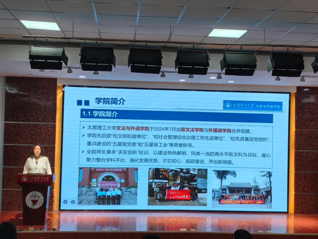 随后,系部负责人代表深入解读专业特色并对同学们深情寄语。公管系系主任王馨蔓介绍了行政管理专业自创立以来的发展与人才培养成果。外语系负责人武晓杰向同学们分享了提升外语专业素养的具体路径,并着重强调了专四、专八考试对于英语专业学生夯实专业基础、增强就业竞争力的重要性。法学系负责人王鹏飞表示法学系将优化教学方法,帮助大家掌握学习技巧,未来培养更多优秀的法学人才,为法治社会建设贡献力量。