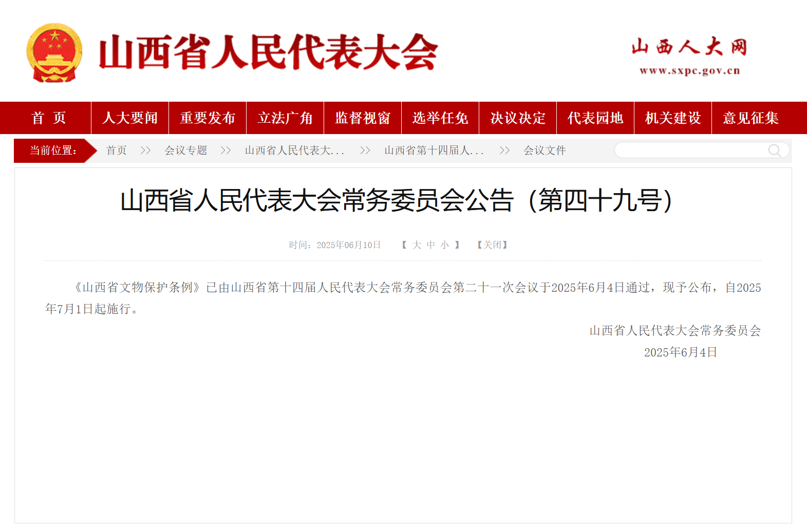 山西作为文物大省,文物资源丰富,文化底蕴厚重。山西省第十四届人民代表大会常务委员会第二十一次会议通过的《山西省文物保护条例》自2025年7月1日起施行,是全国新修订的文物保护法施行以来第一部省级地方性配套法规。在该条例草案向社会公开征求意见建议时,雷兰教授逐条逐项论证分析,提出了15条意见建议,经山西省人大常委会法制工作委员会认真研究后,对其中的1条意见予以完全采纳,即条例第五十三条第二款、第三款。这些意见对进一步完善法规有关文物保护经费的预算执行和经费使用情况的监督等方面的内容,提供了重要的参考价值。条例的出台,凸显了以法治之力守护“地上文物看山西”的金字招牌,也充分体现了我院法学专业教师对推进文物保护与合理利用的“智囊”作用。