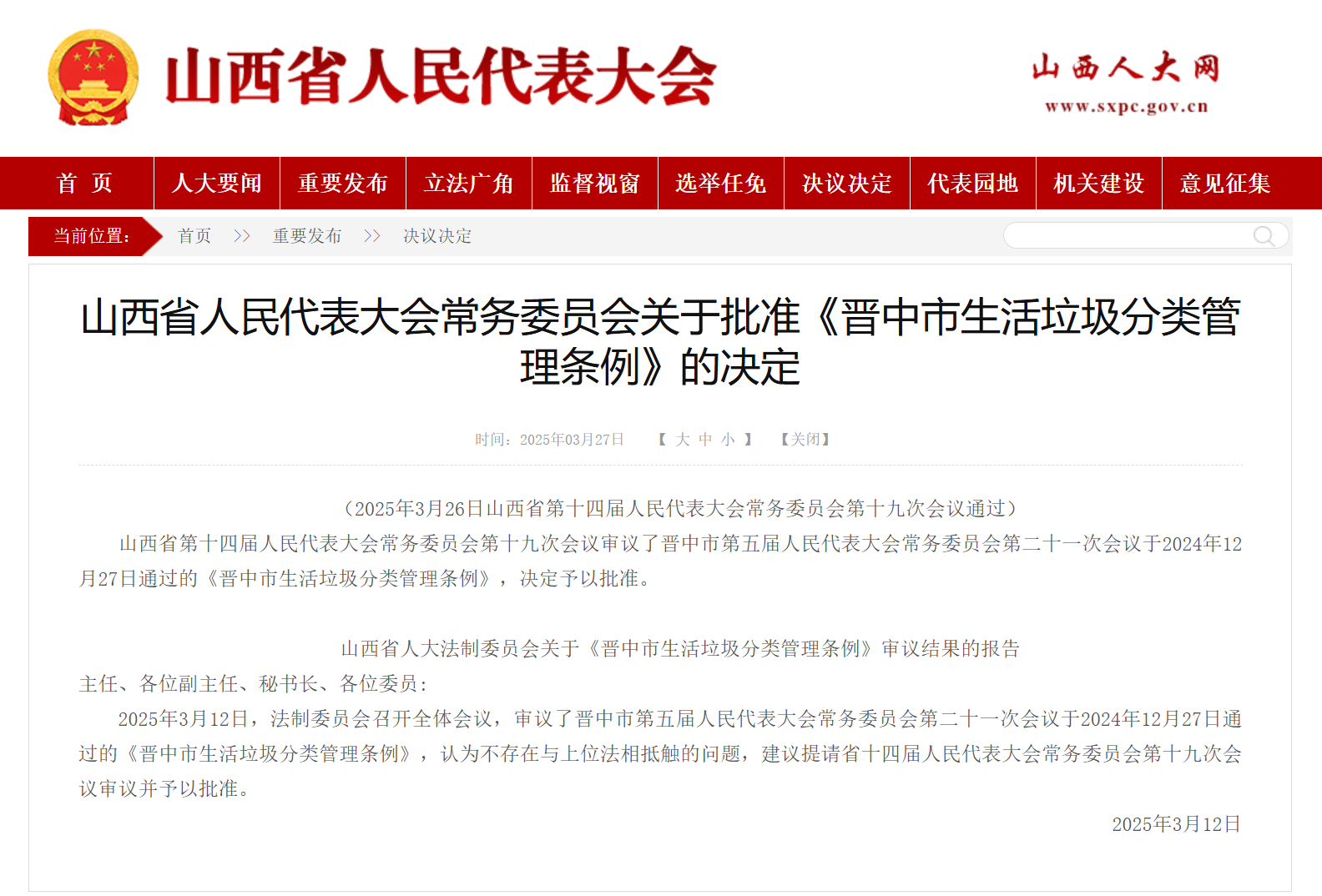 躬耕环境资源法学研究,推动绿色生活方式蔚然成风。山西省第十四届人民代表大会常务委员会第十九次会议决定批准、自2025年7月1日起施行的《晋中市生活垃圾分类管理条例》,也是雷兰教授主持的项目转化成果。
