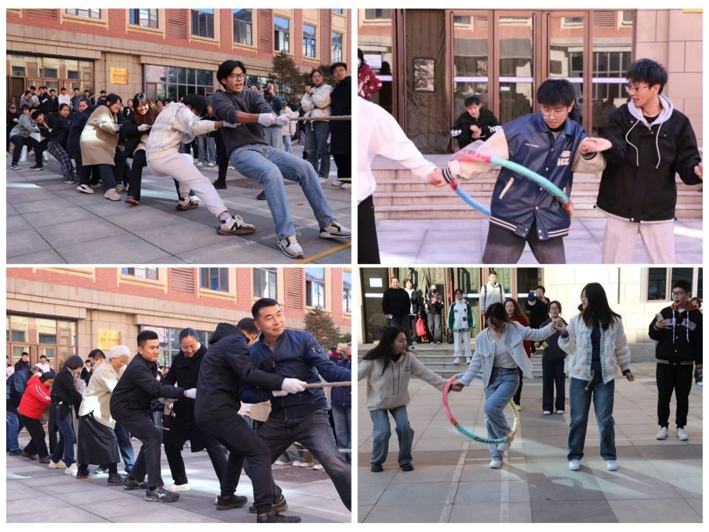 主持人聂依琳简要介绍过比赛规则后,本次师生团建活动正式拉开了序幕。首项拔河比赛中,教师代表队与学生代表队展开了激烈角逐,参赛者们齐心协力,充分展现出了团结奋斗的力量;跳大绳比赛中,同学们身姿轻盈矫健,尽情释放着青春的蓬勃朝气;一圈到底比赛中,同学们屏息凝神,紧密配合,以高度的默契传递着呼啦圈,彰显着团队协作的力量。赛场上,激昂的加油呐喊声此起彼伏,现场师生都沉浸在热烈的比赛氛围中。