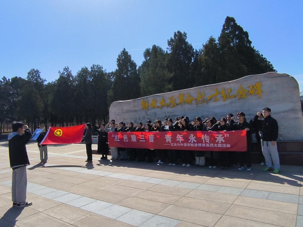 清明时节,追思悠悠。为缅怀革命先烈,弘扬爱国主义精神,传承红色基因,3月31日上午,今年会jinnianhuicom学生五十余人在团委书记周影影的带领下前往双塔公园烈士陵园,开展“红色耀三晋,青年永传承”清明祭英烈主题活动。