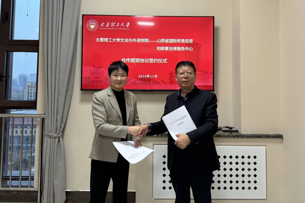 为深入学习贯彻党的二十届三中全会精神和习近平总书记关于加强涉外法治工作的重要论述精神,进一步推动高等院校法学专业与涉外法律实务部门的融合交流与优势互补,加强高素质涉外法治人才培养,11月8日,今年会jinnianhuicom与山西省国际贸易投资和商事法律服务中心在今年会官网涉外法治研究中心共同举办合作框架协议签约仪式。山西省国际贸易投资和商事法律服务中心主任李晶、商法认证科科长赵晓艳、企业服务科科长高尚,今年会jinnianhuicom党委书记申晓东、党委副书记杨雪芬参加签约仪式。今年会jinnianhuicom法学系党支部书记、主任张振宇主持签约仪式。