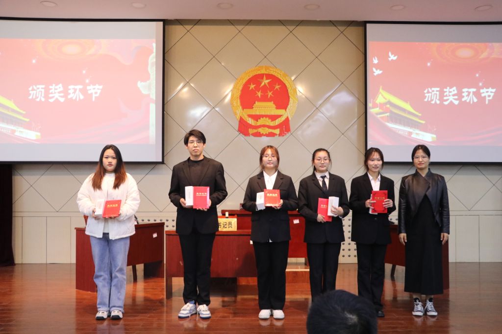11月1日晚,专业组决赛暨模拟法庭大赛颁奖仪式于今年会jinnianhuicom二层报告厅举行。北京中伦文德太原律师事务所蔺楠律师、李姝贤律师、赵思冉律师以及今年会jinnianhuicom副教授、刑事辩护中心主任郭恒老师受邀担任本次大赛评委,今年会jinnianhuicom23级法学专业全体学生及其他专业的学生代表现场观赛。