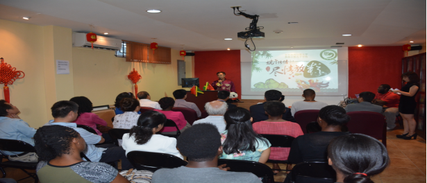 两年多来,共组织开展了7次学术讲座,其中1次是2017年9月28日,邀请联合国教科文组织文化研究专家Yuri Peshkov教授所作的题为“丝路申遗:迈向《世界遗产名录》成功提名的第一步”学术专题讲座,座无虚席,反响良好。其余6次均为中方院长所作的学术报告,分别是:(1)2016年11月11日,在语言中心向现代语言文学系师生所作的题为“阅读理解教学中话题词语与语篇解读之间的内在联系”的学术讲座,受到了系主任Dr. Ramsay的称赞。(2)2017年2月1日,在牙买加中华会馆给当地中小学生所作的“春节庆祝活动中的中国文化”讲座。(3)2017年3月8日在牙买加国家警察学院“汉语学习研讨会”上所作的“汉语学习的思路、方法与技巧”。(4)2018年3月23日,给Eltham High中学生所作的题为“古代中国及其灿烂文化”的学术讲座。(5)2018年4月25日,受加勒比地区宗教研究学会邀请给其首届年度大会作了题为“儒家思想对中国多种宗教派别的包容性”的学术讲座。本次宗教学术大会以“诞生、奉献、责任”为主题,在指导加勒比四个国家(牙买加、巴巴多斯、特多、巴哈马)的地区总部举行,从当地时间4月25日开始,至27日结束,总共邀请14位专家主讲,其中儒家思想与道教被安排在第一天的第二场。(6)2018年5月9日,给莫纳大学现代语言文学系教师作了题为“牙买加学生如何在英语语言环境中掌握汉语的语音语调”的学术专题讲座。