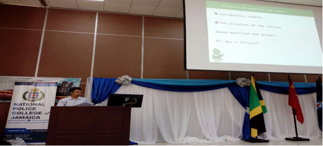 On March 8, 2017, YU Wansuo, Chinese CI Director, delivered a lecture entitled “Mona Confucius Institute and Its Chinese Language Education Program” in the National Police College of Jamaica.
