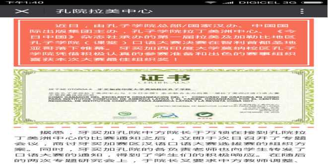 (1)2016年9月14日,孔院拉美中心授予牙买加西印度大学莫纳分校孔子学院首届拉美孔院口语大赛“最佳组织奖”。